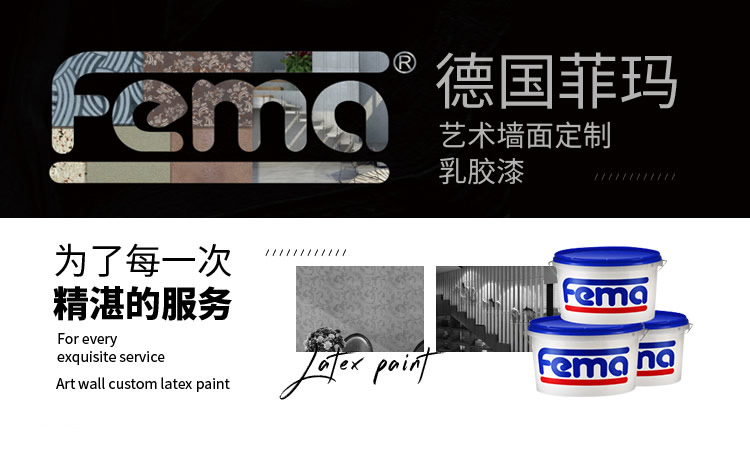始于1984年德國(guó),專業(yè)從事裝飾涂料及進(jìn)出口貿(mào)易、裝飾施工和個(gè)性化裝飾設(shè)計(jì)及服務(wù)的綜合性公司,是藝術(shù)涂料行業(yè)頗具實(shí)力的品牌。菲瑪致力于提供專業(yè)的墻面整體解決方案,主營(yíng)藝術(shù)墻面、乳膠漆、水性木器漆等產(chǎn)品。2014年6月四川菲瑪貿(mào)易有限公司被授權(quán)成為大中華區(qū)總代理,憑借其先進(jìn)的生產(chǎn)工藝、源于大自然的創(chuàng)意靈感、專屬的施工團(tuán)隊(duì),F(xiàn)EMA品牌成功進(jìn)入國(guó)內(nèi)市場(chǎng)。