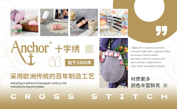 Anchor在67個(gè)國(guó)家/地區(qū)擁有超過(guò)250年的經(jīng)驗(yàn),以幾代人的專業(yè)知識(shí)和熱情為基礎(chǔ),開(kāi)發(fā)出適合全球各種形式的創(chuàng)意工藝品的高品質(zhì)線。Anchor品牌的歷史可以追溯到1866年,當(dāng)時(shí)Clark家族在蘇格蘭佩斯利生產(chǎn)的繡花線采用了Anchor品牌。大約1812年,由于拿破侖的封鎖,英國(guó)無(wú)法獲得絲綢供應(yīng),因此繡花線應(yīng)運(yùn)而生。兩位織工,詹姆斯和帕特里克克拉克,將注意力轉(zhuǎn)向棉花,并設(shè)法生產(chǎn)出足夠精細(xì)、光滑和結(jié)實(shí)的紗線,可以用來(lái)代替絲綢進(jìn)行織造。當(dāng)時(shí)縫紉線主要是絲綢或亞麻,克拉克兄弟將棉紗開(kāi)發(fā)成第一條棉縫紉線。